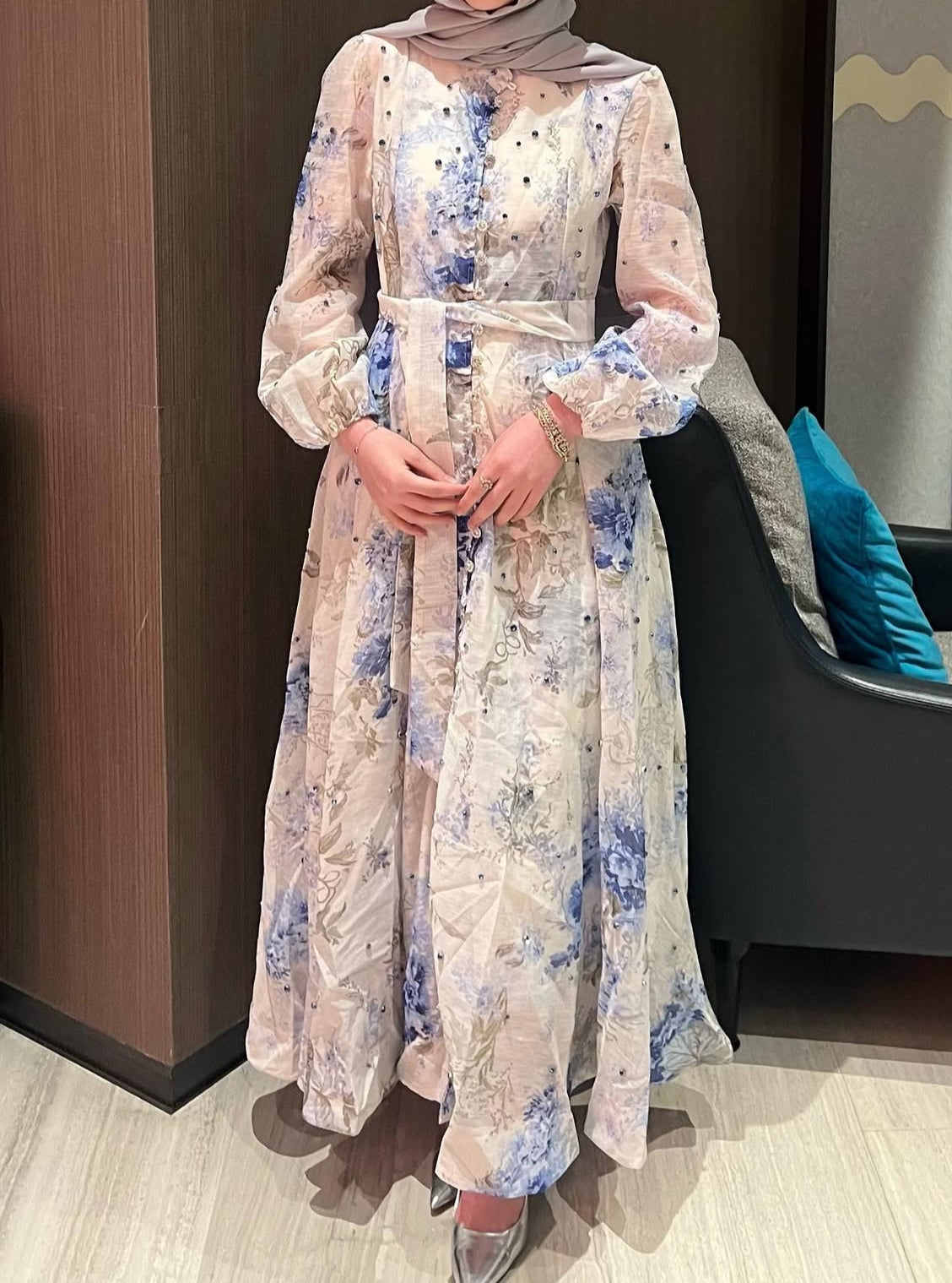 Sık büzgülü detaylıSandy kumaştır140 cmFermuarlı uzun elbiseS-M-L şeklindedir